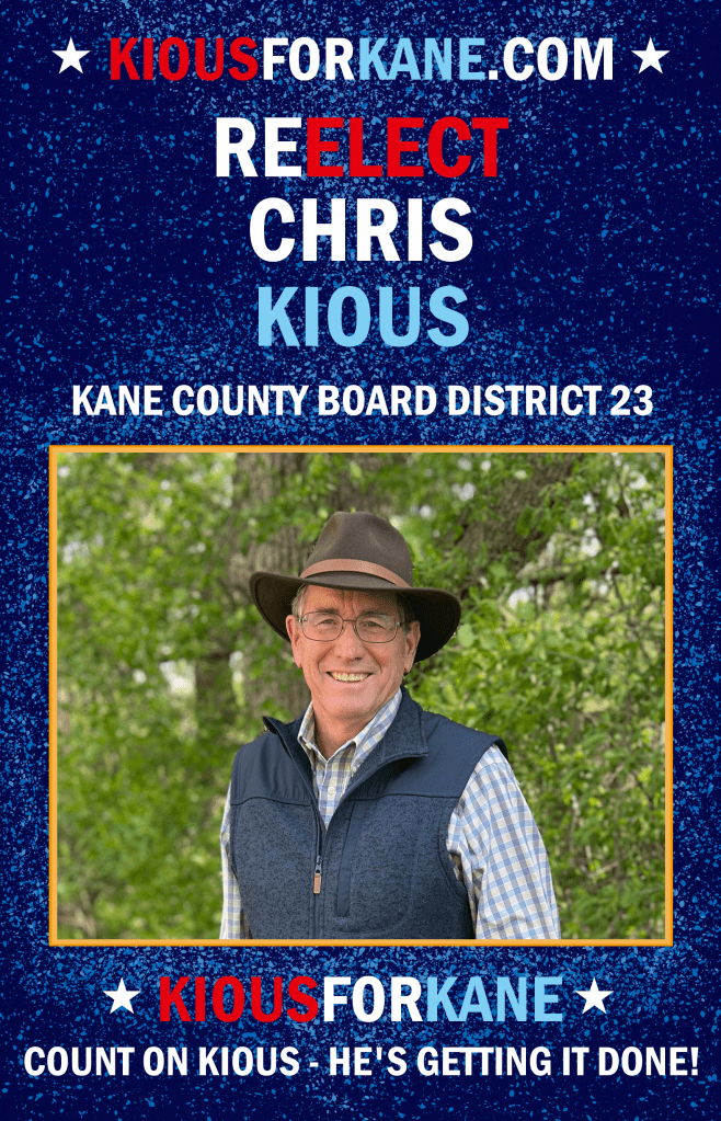 Chris Kious is a democratic council member of the Kane County board that supports green policies, human rights, and community welfare.