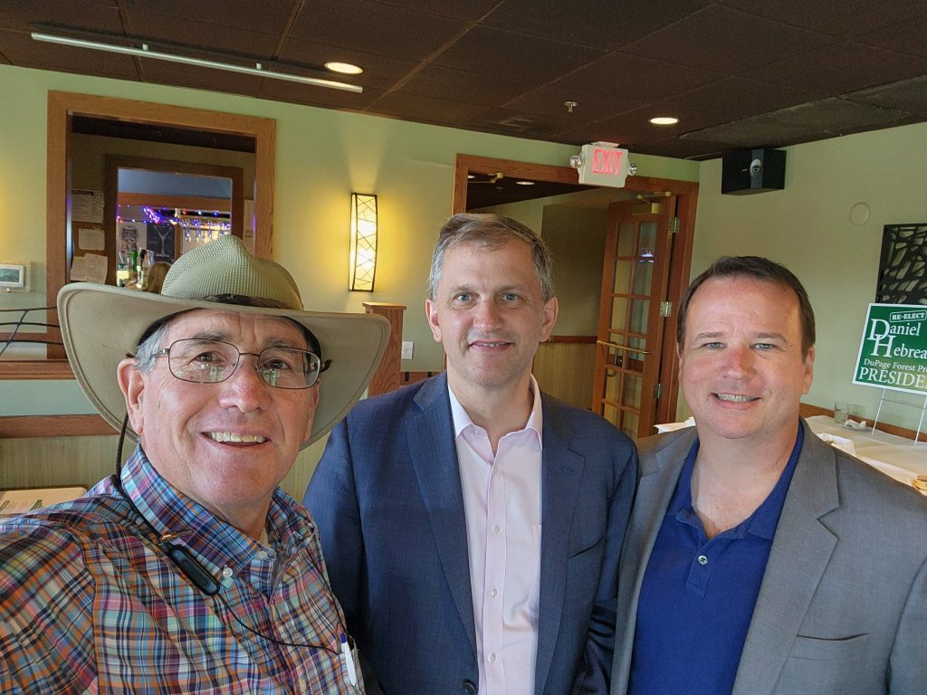 Today I got a chance to talk forest preserves, bicycle paths, and politics with our 6th District Congressman Sean Casten and fellow forest preserve president, Daniel Hebreard (Dupage County) at President Hebreard’s campaign kickoff in Lisle.